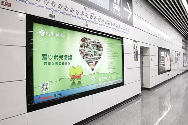 On May 20, Sijiyoumei "Student Assistance" light box public service advertisement made its official appearance in Shenzhen. The 20 advertising spots are dotted over 9 stations of Shenzhen Metro Line 3, including Tianbei, Cuizhu, Sunbu, Hongling, Huaxin, Children's Palace, Futian, Shopping Park and Shisha, as well as 4 stations of Metro Line 4, including Longhua, Futian Port, Fumin and Citizen Center. The advertisements will be on all day long. The design of the advertisements are simple and elegant and they look more conspicuous when dawn comes and street lights are turned on.