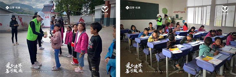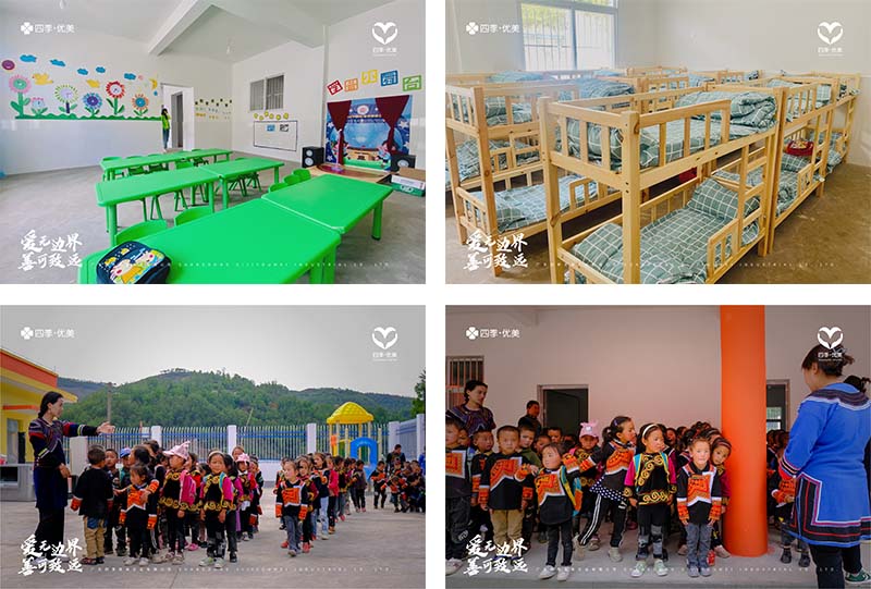 四季優美已在昭覺捐建了2所小學、3座橋梁、 1所幼兒園,第4座橋梁已在規劃中;一對一資助學生人次近500名;暖冬活動項目已為10所鄉村小學的3000余名孩子送去了超30萬元的物資;捐獻逾千本書籍,充實所捐建學校的圖書室。截止目前,四季優美各類公益捐贈累計近1000萬元。